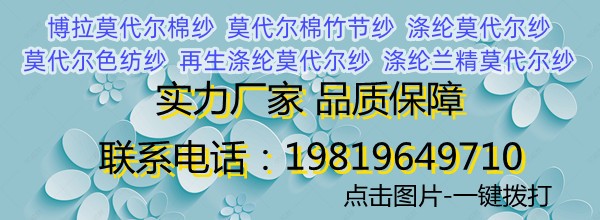 涤纶兰精莫代尔纱:高湿模量的纤维素纤维,原料采用欧洲的榉木,现将其制成木浆,再纺丝加工成纤维,是100纤维,对人体无害!不污染环境。因为它本身具有的很好的柔软性和优良的吸湿性但其织物挺括性差的特点,现在大多用在的生产。莫代尔的针织物主要用于制作。但是莫代尔具有银白的光泽、优良的可染性及染色后色泽鲜艳的特点,足以使之成为外衣所用之才。正因为如此,莫代尔日益成为外衣及其装饰用布的材料。