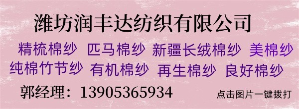 当前位置:123纺织导航 > 产品推广 > 美棉纱是什么工艺?澳棉纱 巴西棉纱 潍坊润丰达纺织GL-纺织网官网